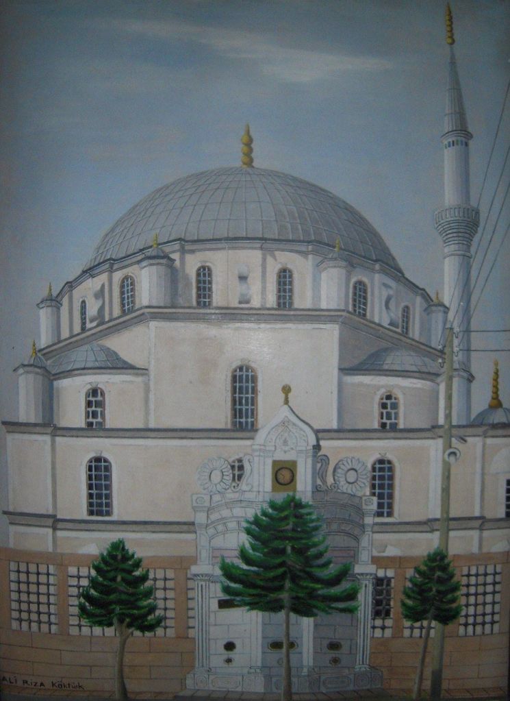 Yeri gelmişken ilkokul öğretmeni babam rahmetli Ali Rıza Köktürk‘ün yaptığı yağlı boya Büyük Cami tablosunu da bu bölümde sizlerle paylaşıyorum. Mekânı cennet olsun!..